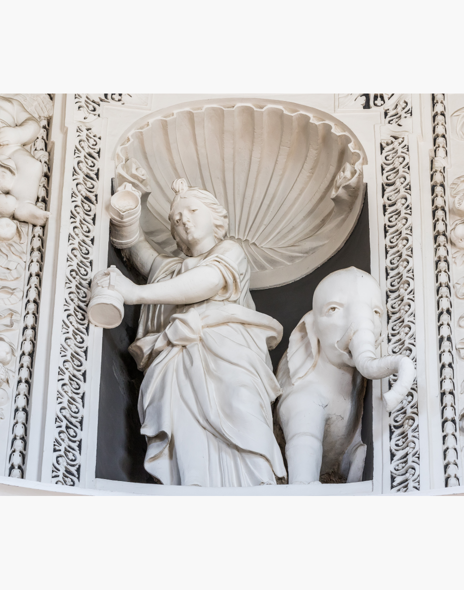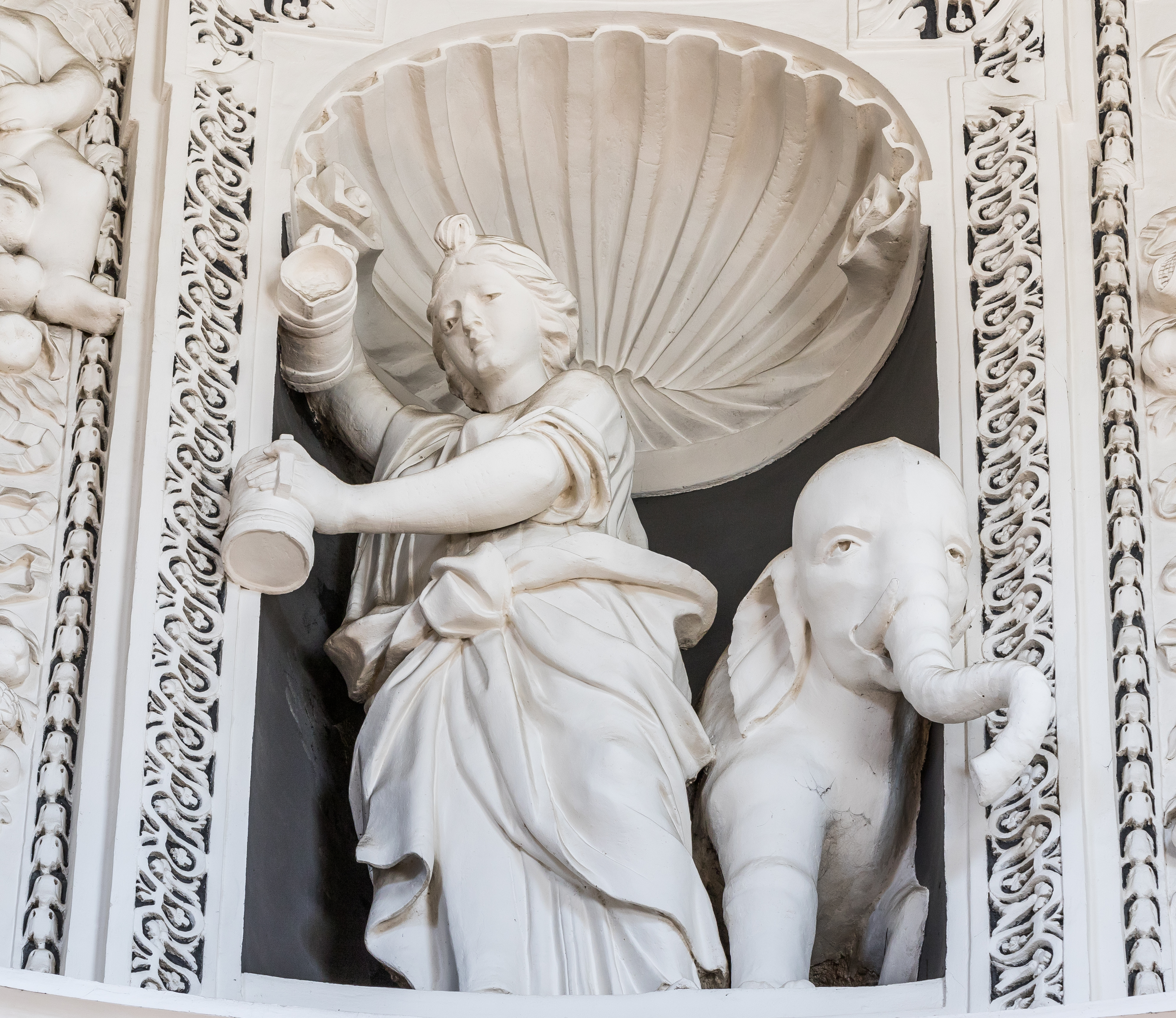 Nuosaikumo dorybę vaizduojanti moteris skiedžia vyną vandeniu. Susivaldymą simbolizuoja ir šalia stovintis dramblys. Tikėta, kad gavęs daugiau nei įprasta pašaro, šis gyvūnas pusę jo atideda rytojui.
