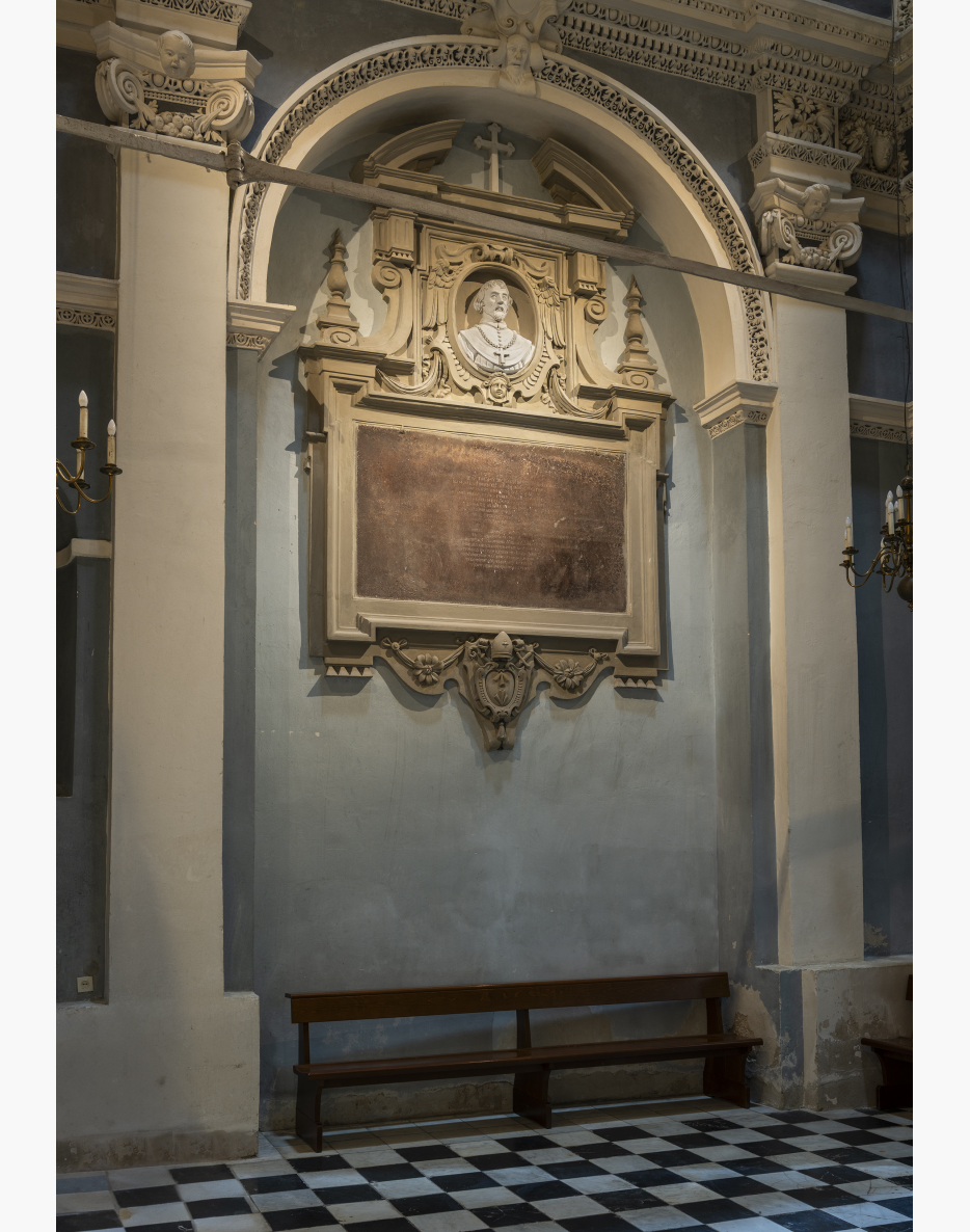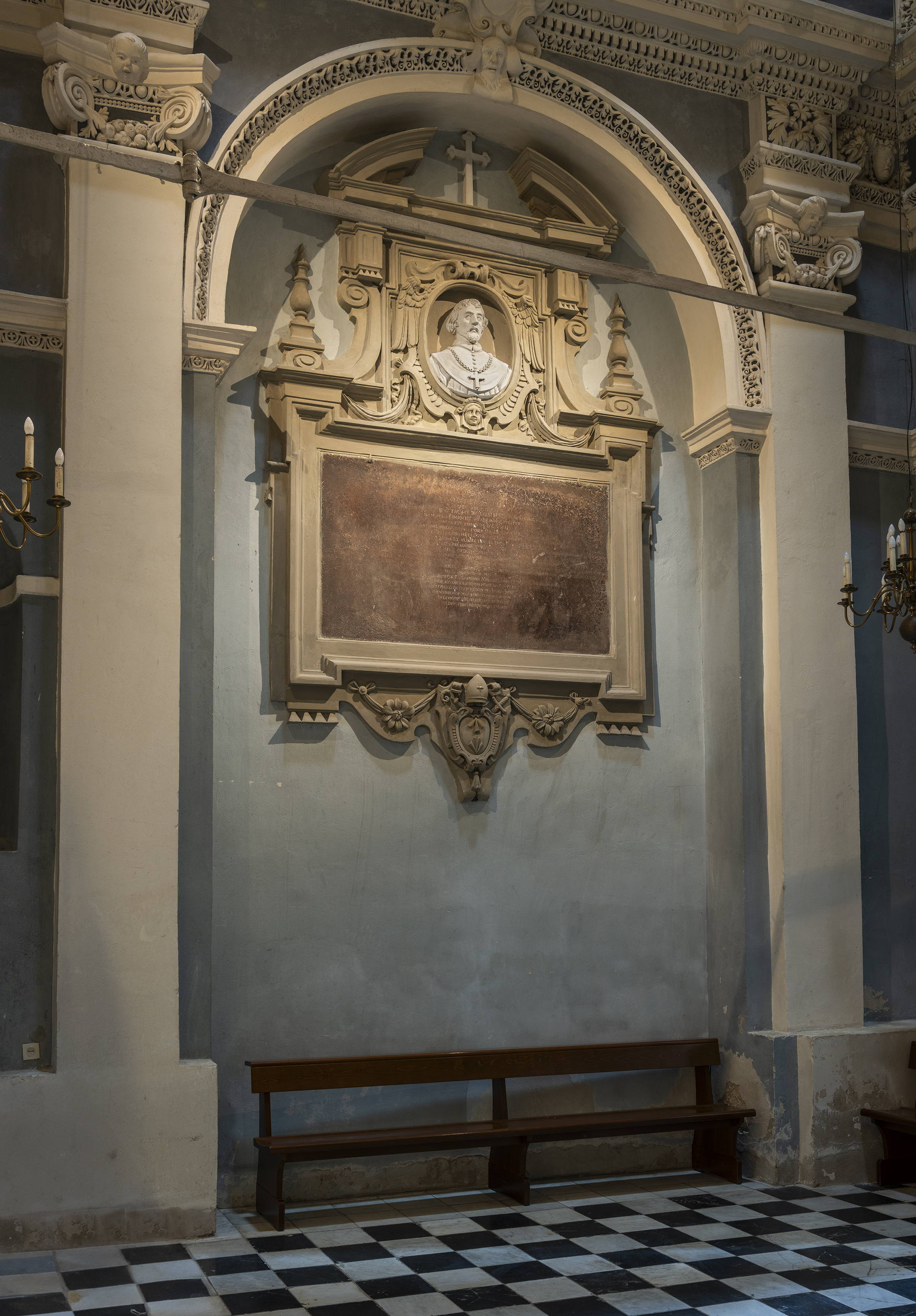 Antkapinis paminklas prie rytinės sienos primena, kad čia palaidotas koplyčios fundatorius Vilniaus vyskupas Eustachijus Valavičius (1572—1630).