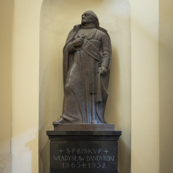 На правій стороні каплиці нагадує про минулі часи надгробок єпископа Владислава Бандурскіса (1865–1932), створений у 1937 році відомим скульптором Станіславом Хорно-Поплавським. Поховання самого єпископа було перенесено до Польщі, тому цей помітний надгробок виконує меморіальну функцію.