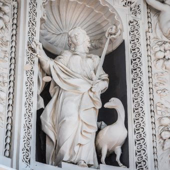 Поміркованість зображена жінкою, що розбавляє вино водою. Символом стриманості є поруч слон, якому вважалося, що він відкладає половину їжі на завтра, якщо отримує більше, ніж зазвичай.