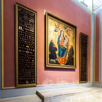 На лівому боці ще вісім картин Костантіно Віллані. Пройшовши від різниці до органної емпори, ви побачите наступні сюжети: Благовіщення, Різдво Христове, Побиття немовлят, Поклоніння волхвів, Втеча до Єгипту, Хрещення Господнє, Покладення Ісуса Христа до гробу та Зіслання Святого Духа.