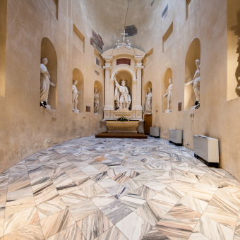 Після реставрації 2020 року в каплиці встановлено сучасну менсу з реліквіями святої Фаустини, блаженного священника Міхала Сопоцька та святого Івана Павла ІІ, над якою розміщено образ Ісуса Милосердного.
